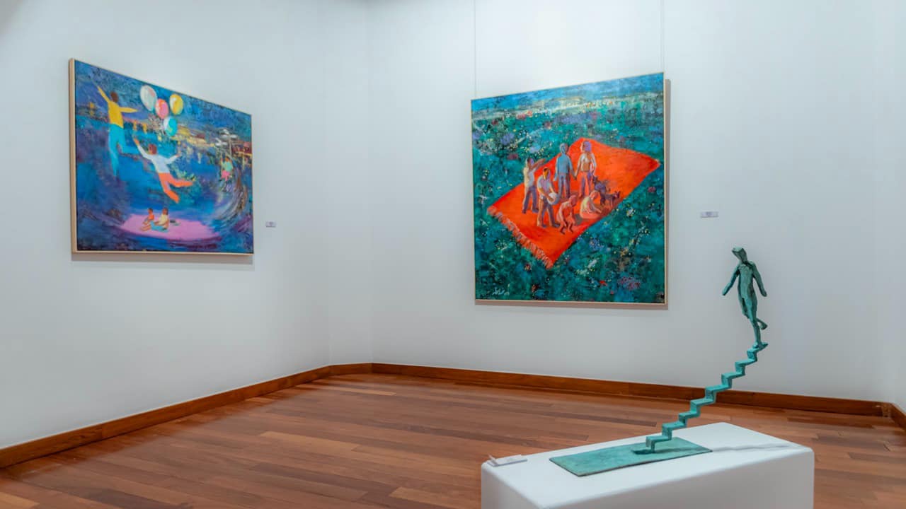 يضم المعرض، المقام حاليًا بجاليري الزمالك حتى الخامس من نوفمبر المقبل، ما يقرب من 45 لوحة وستة منحوتات، يحلق فيها أشخاص متنوعي الخلفيات الثقافية والاجتماعية والفكرية في السماء على بساط حينًا، أو بمعاونة أجنحة تنبت لهم حينًا آخر، لكنهم جميعًا يشتركون في الحرية والسعادة والتحليق فوق قيود الواقع الخانقة.