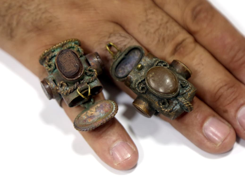ويضيف أن هناك نوعًا خاصًا من الخواتم عُرف باسم «خواتم الأدراج السرية»، صُممت بجيوب صغيرة لحفظ السُم، سواء لاستعماله فى الانتحار أو فى دسّه للآخرين، كما استخدمت أيضًا لحمل التعاويذ والأحجبة.