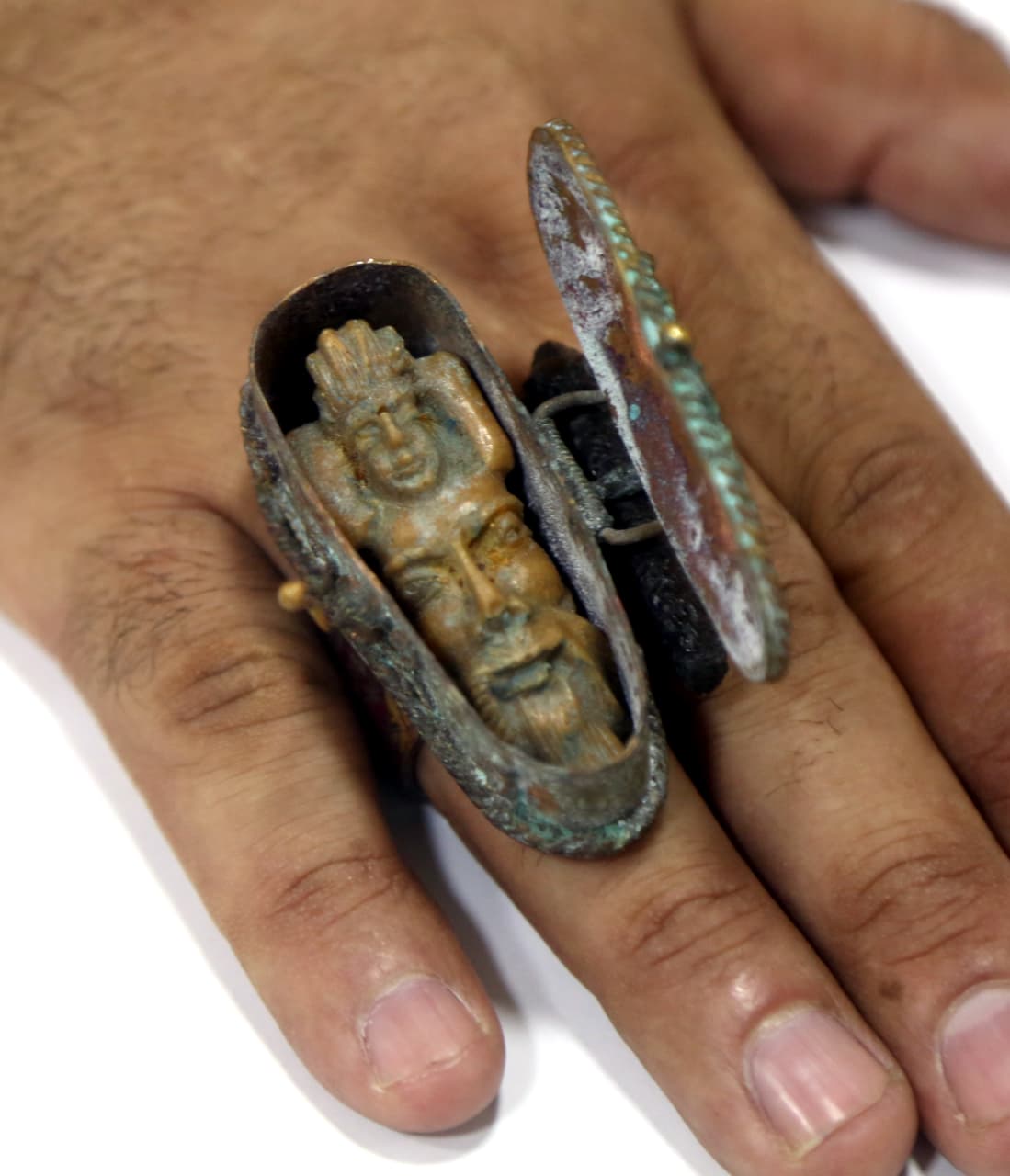 عن الجانب التاريخى، يوضح أن صناعة الخواتم مرت بمراحل مميزة، ففى الفترة الفرعونية، تميزت الخواتم بتقنيات ميكانيكية تسمح بطيّها أو تعليقها فى قلادة أو سلسلة لحين الاستخدام، أما فى الفترة اليونانية والرومانية، فاعتمدت على أحجار نادرة وحملت صورًا لملوك وقادة مثل الإسكندر الأكبر وكليوباترا، للتبرك والتفاخر، وفى الفترة العثمانية وما تلاها فى مصر، برزت الخواتم الثقيلة المصنوعة من النحاس المقوّى، لتناسب العمال وأصحاب المجهود الشاق، وكانت تُرصّع بحجارة كبيرة لا تنكسر بسهولة.