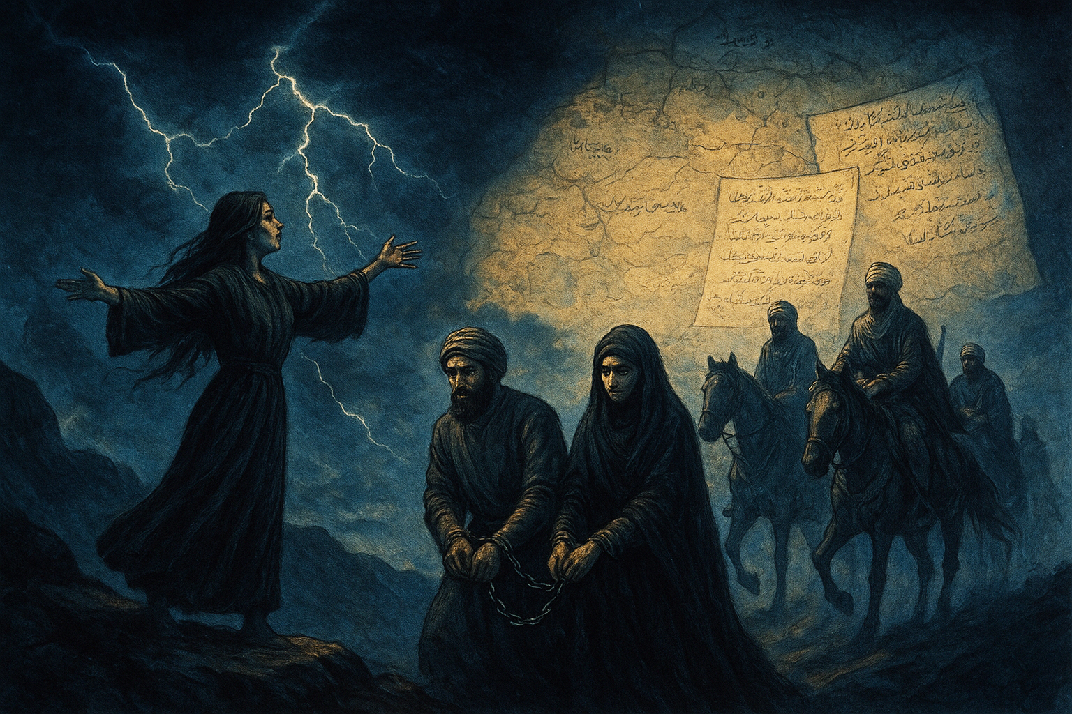 ثمة منحى جوهرى فى الرواية يتصل بمساءلة التطرف الدينى، والاتجار باسم المقدس، الذى تتبناه المهدية وأتباعها: «أوثق عمر أزوق قدمى وساعدى التلب بالحبال، وشده من عنقه وقيّد مسك الجنة بالأصفاد الحديدية، ربطهما بسرجى جوادين، وأردف ست النفر أمامه وهو يعلن أنه سوف يبيعها فى سوق العبيد بعد أن يستمتع بمضاجعتها أولًا. صرخ به التلب أن يترك زوجته وحالها فليس لها فى الأمر شأن، صرخ مهتاجًا معلنًا أنه كافر مرتد يحل عليه الموت، وعلى زوجته السبى».