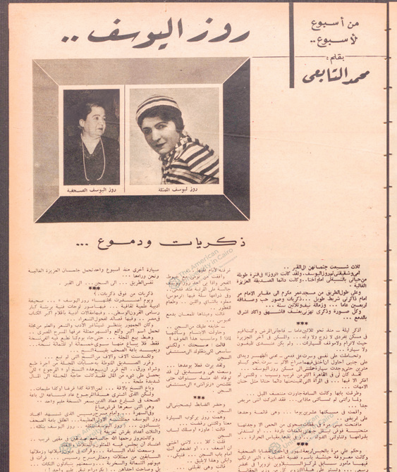 شهادة التابعى عن كفاح روزا نشرت بعد وفاتها فى آخر ساعة سنة ١٩٥٨