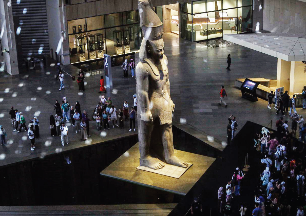 ومن يقف اليوم فى بهو المتحف الكبير يراه يحرس الزمن بعينيه المنحوتتين فى الجرانيت الوردى. ينظر إليه الزائرون، مصريين وأجانب، فى صمتٍ مهيب، تلتقط أبصارهم الملامح ذاتها التى صمدت كل تلك السنيين، وفى وجوههم جميعًا شىء من الدهشة والاعتزاز، كأنهم يرونه للمرة الأولى.