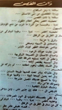 «هو الحب يغمرنا بالضياء، يطارد فينا خفافيش حقد المساء، يبلل أعماقنا بالطهارة، يغمسنا فى رحيق التصافى، نصير عصافير تخفق بالأمنيات العذارى، ويسرقنا من سويعاتنا المتعبات الدقائق، يحملنا فوق جنح اشتهاءاتنا نحو ليل المواويل والأغنيات الطروبة يزرعنا فى حقول التلاقى، وينثر فوق الرءوس المودة، تنمو نسورًا تطارد أشباح ليل عذاباتنا، تستحيل انتحارًا، فتغلى المراجل فى صدغها، تقتل الأخطبوط المرابط فوق جسور صباباتنا».