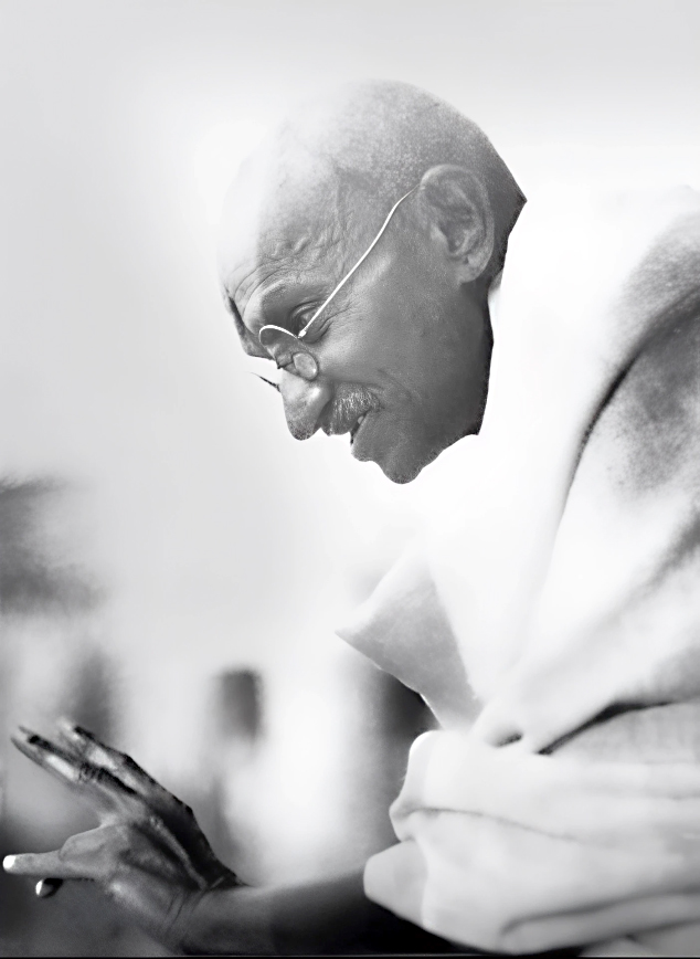 «ربعة القامة، نحيل الجسم، أسمر اللون، صغير الوجه، هادئ العينين، كبير الأذنين، حليق الذقن، خفيف الشاربين - هذا هو غاندى، زعيم الهند الأكبر كما رأيناه.