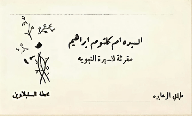 «فى تاريخه أدناه، اتفقت الموقع اسمى بخطى أدناه: إبراهيم السيد، من طماى مركز السنبلاوين دقهلية، مع أحمد إسماعيل، من الكوم الطويل مركز كفرالشيخ غربية «نعم كانت تابعة للغربية»، على حضورى مع كريمتى السيدة أم كلثوم لتلاوة القصة الشريفة النبوية، والحضور هو يوم الجمعة ذو الحجة سنة ١٣٣٨، ليلة الجمعة ٥ منه، على مقاولة قدرها مبلغ ٩٥٠ تسعمائة وخمسون قرش صاغ ميرى. وصلنا عربون مبلغ ٤٠٠ أربعمائة قرش صاغ ميرى، وباقى لنا طرف المذكور مبلغ ٥٥٠ خمسمائة وخمسون قرش صاغ ميرى. وقد تحررت هذه شروطًا بذلك».