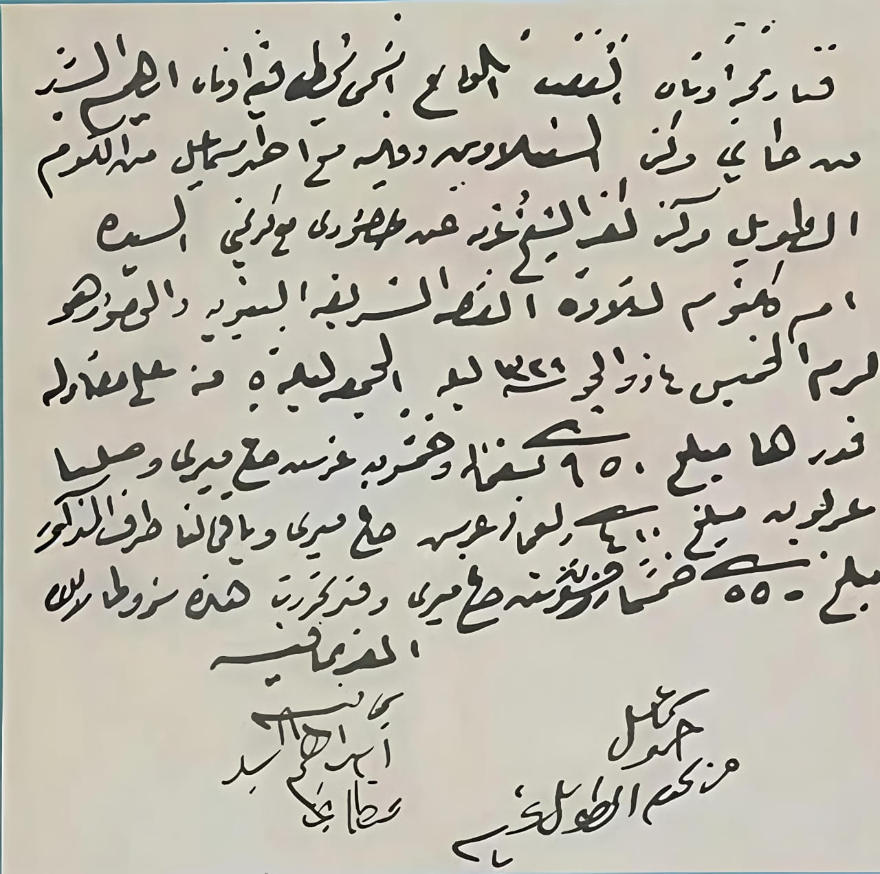 وحمل التوقيع اسمى: إبراهيم السيد «مطاى» وأحمد إسماعیل «كوم الطويل غربية».