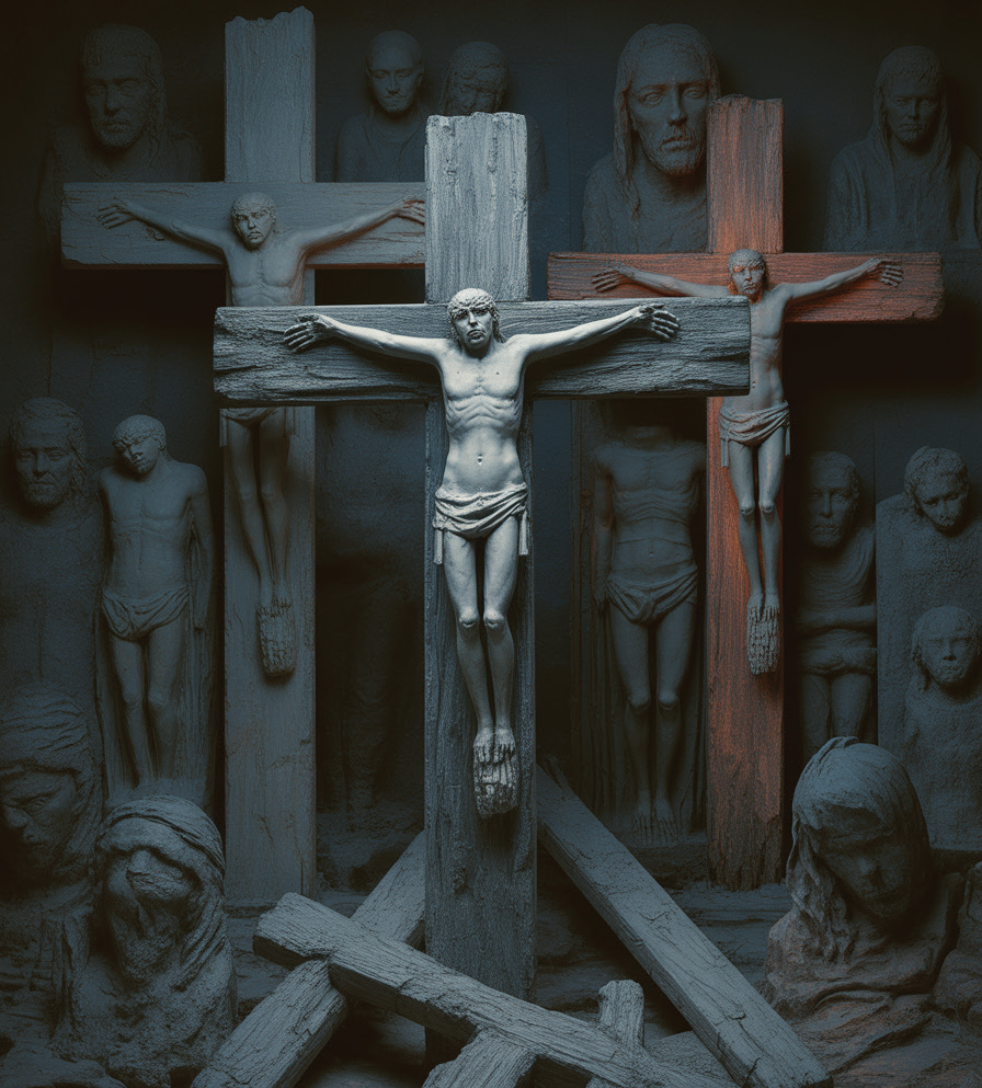 لكن يده لامست شيئًا. قطعة خشب. صليب صغير، منسى، ربما لطفل، أو سيدة عجوز. سقط دون أن يلاحظه أحد. رفعه ببطء، أزال عنه الغبار بأنامل مرتجفة، وتأمله كما يتأمل العميان وجوه أحبتهم: بلمس القلب، لا البصر.