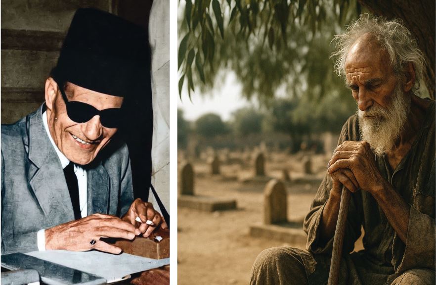 - يا بنى لا يحتاج الذل والانكسار والضعة إلى عينين، بل إلى قلب يحس ويأسى. أترى القبور أمامك؟ هذا، وأشار بيده إلى صدره، هذا قبر آخر.
