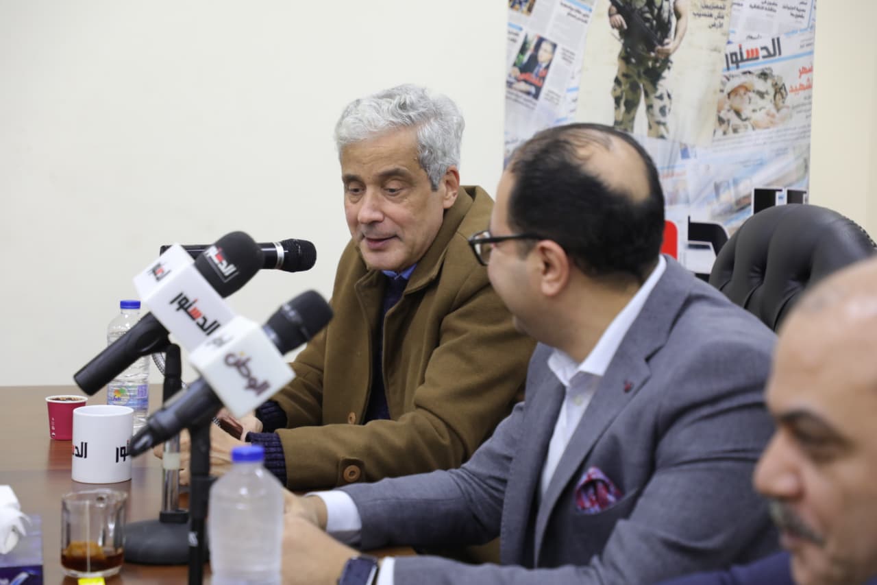 وفى ختام اللقاء، أهدى الدكتور محمد الباز درع جريدة «الدستور» للروائى شريف سعيد، تكريمًا لفوزه بالجائزة.