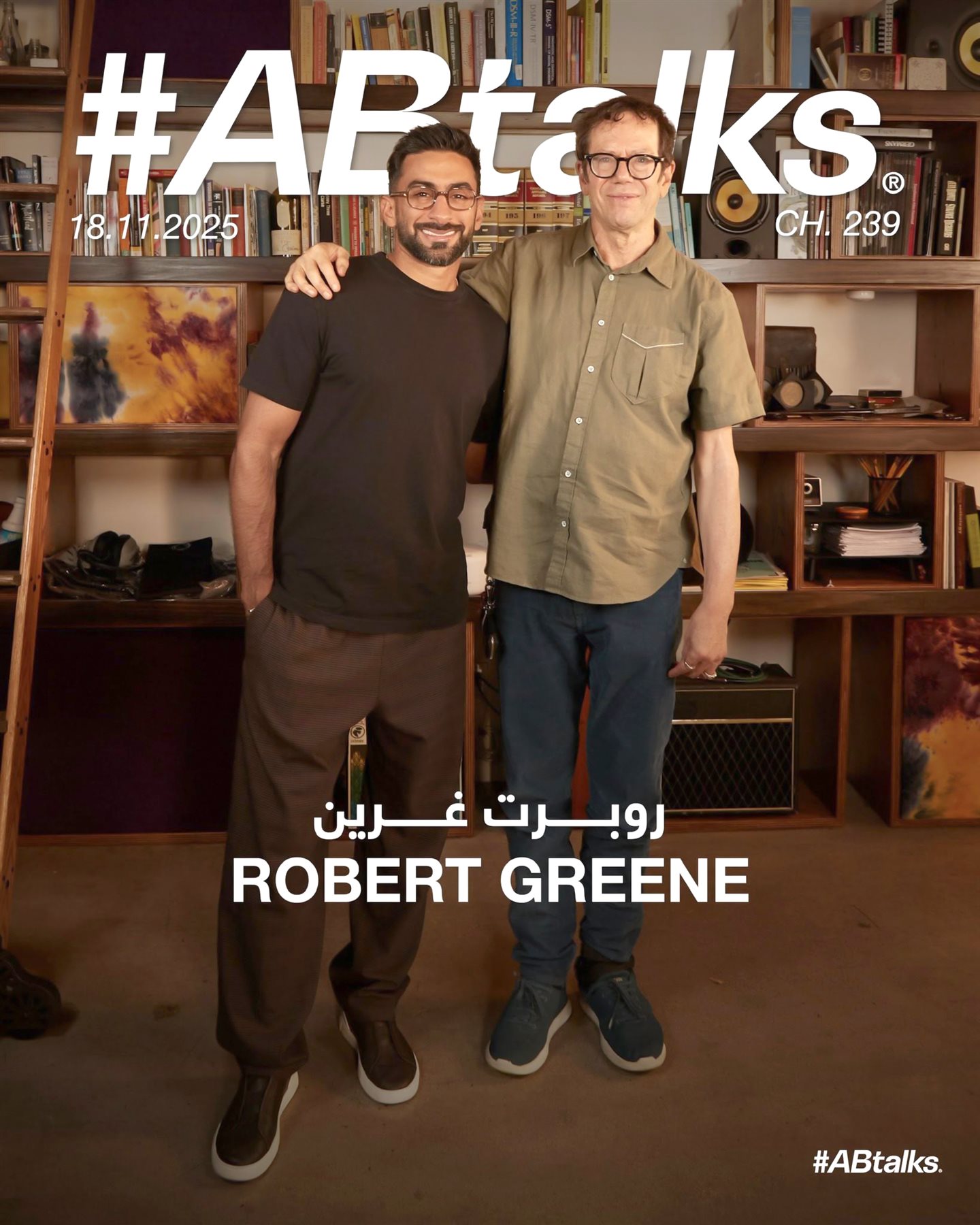 على مدار ما يقرب من ساعتين، وخلال لقاء تليفزيونى بعنوان ABCTalks الذى يقدّمه الإعلامى الإماراتى أنس بوخش، بدت الرحلة إلى لوس أنجلوس أشبه برحلة ذهنية مع الكاتب الأمريكى روبرت جرين. جرين، الذى نجا من سكتة دماغية كادت تودى بحياته، عاد إلى العالم بنصف جسد يعمل ونصف آخر شبه معطّل، لكن ما لم يُصب بأى عطب، ولم يتوقف لحظة، هو نشاطه الذهنى وشعلته الفكرية الحاضرة بقوة فى آرائه عن الحياة، والكتابة، والفلسفة، والتاريخ، وتنمية الروح.
