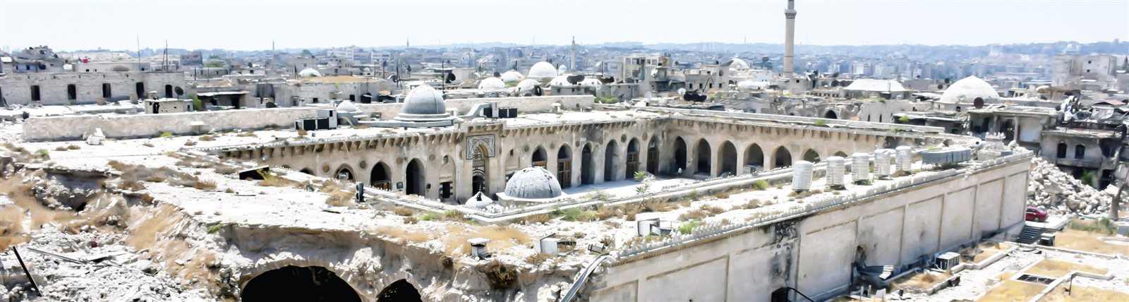 أما سوق حلب، والتى تعد أكبر سوق تاريخية مغطاة تمتد لحوالى ١٣ كيلومترًا وتعود للعصور الوسطى «الأيوبى والمملوكى والعثمانى» وتحوى آلاف المحلات والحمامات والمساجد، فقد احترقت ودُمر جزئيًا.